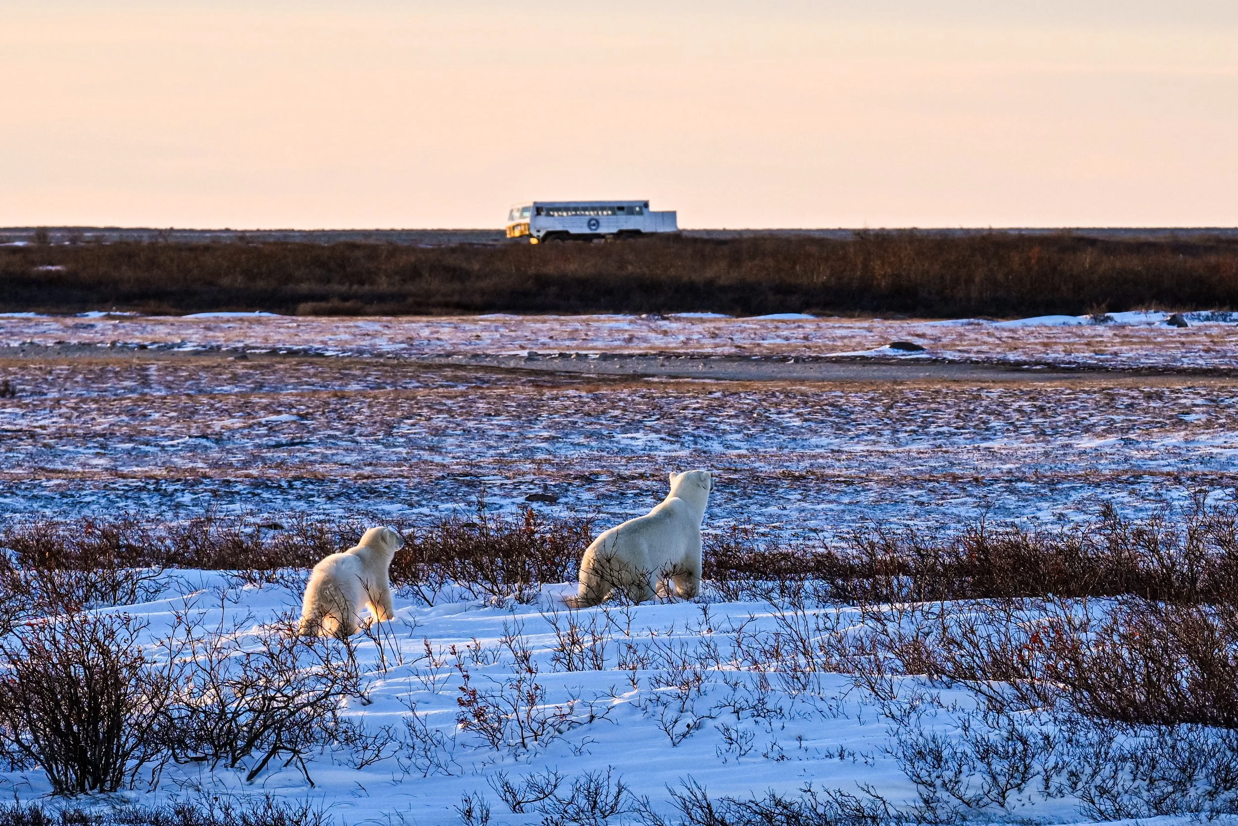 We were met with a clear day in Churchill, and our tundra buggies were able to travel onto ice that had been inaccessible even days earlier. Photographer Pablo Baković returned, along with Will Hosier, who focused on capturing moments of the guests on board.